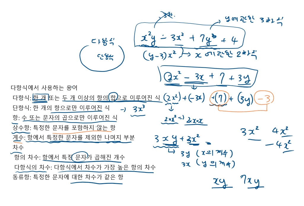 다항식을 배울 때 나오는 용어 입니다.